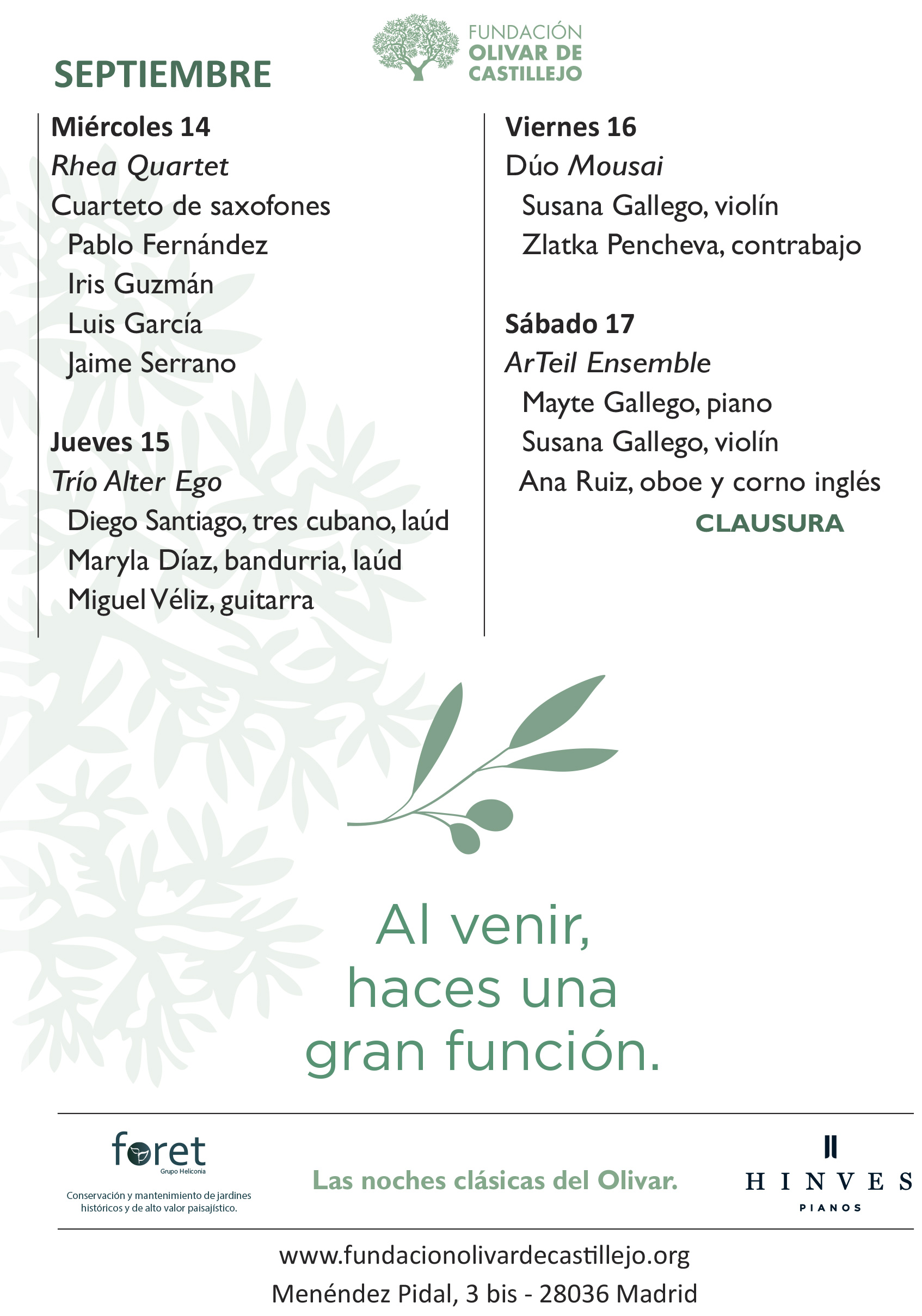 Apertura del recinto al público para el acceso: 45 minutos antes del horario previsto de la actividad.